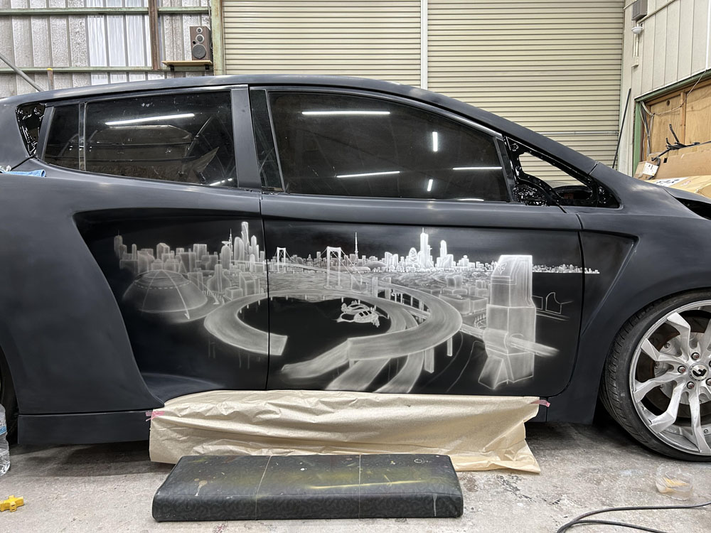 東京オートサロン2024出展時にはモニターに描いている過程を流してもらえ、想い深い作品となりました♪