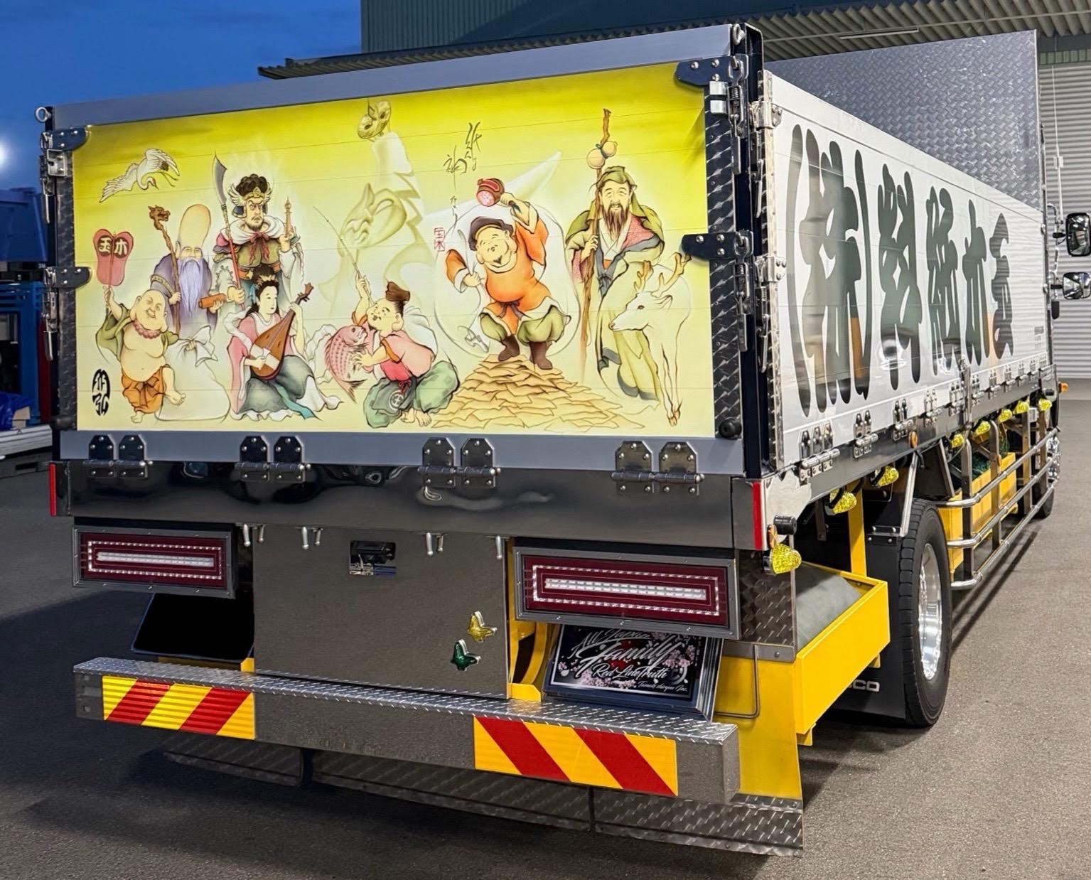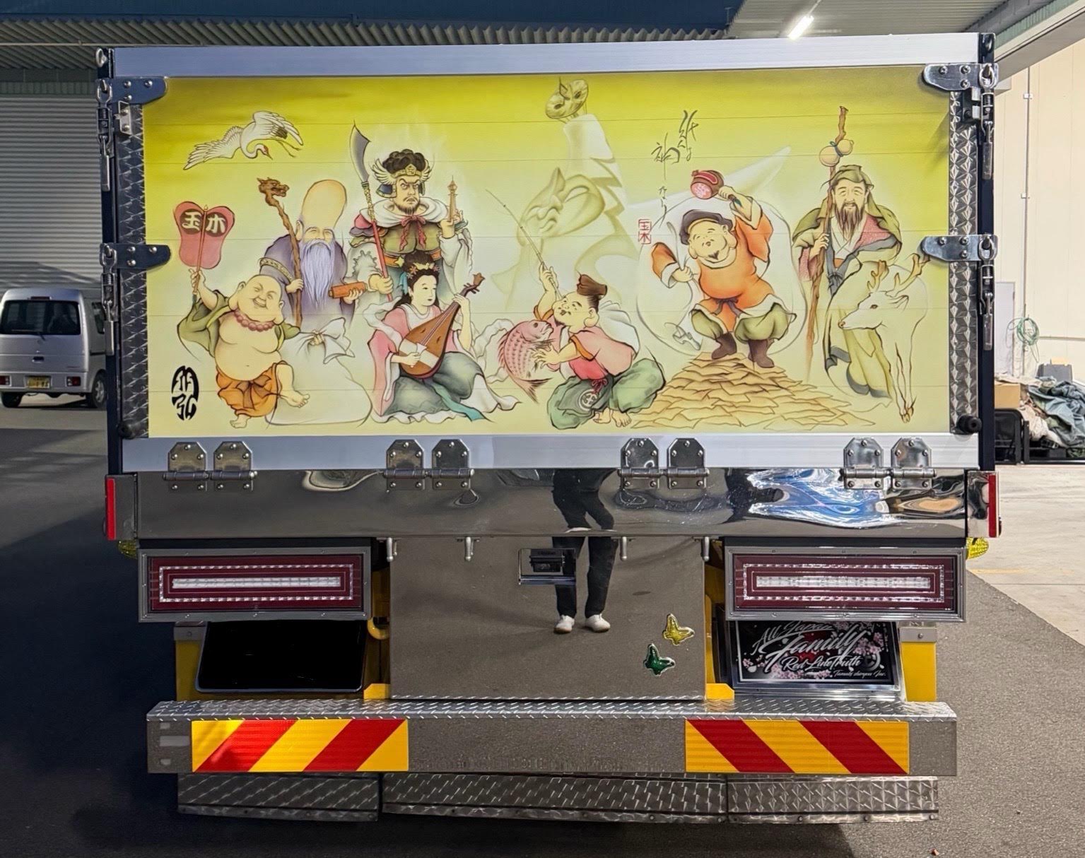 七福神と太陽の塔!というご注文。“紙は神なり“ 大黒天が古ダンボールの上でうちでの小槌を振る。紙屋さんなので古紙がお金に変わる、捨ててしまう物でもそこに神が宿っています